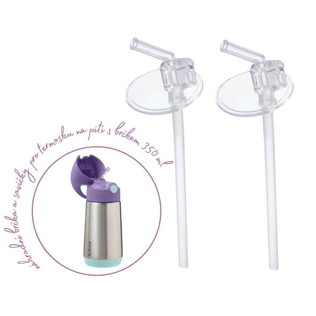 Tyto 2 kusy náhradních saviček včetně brček jsou speciálně vyrobené pro termosku na pití s brčkem o objemu 350 ml značky b.box. Díky kvalitnímu materiálu z PP a silikonu vám zaručí dlouhou životnost a bezpečné používání.