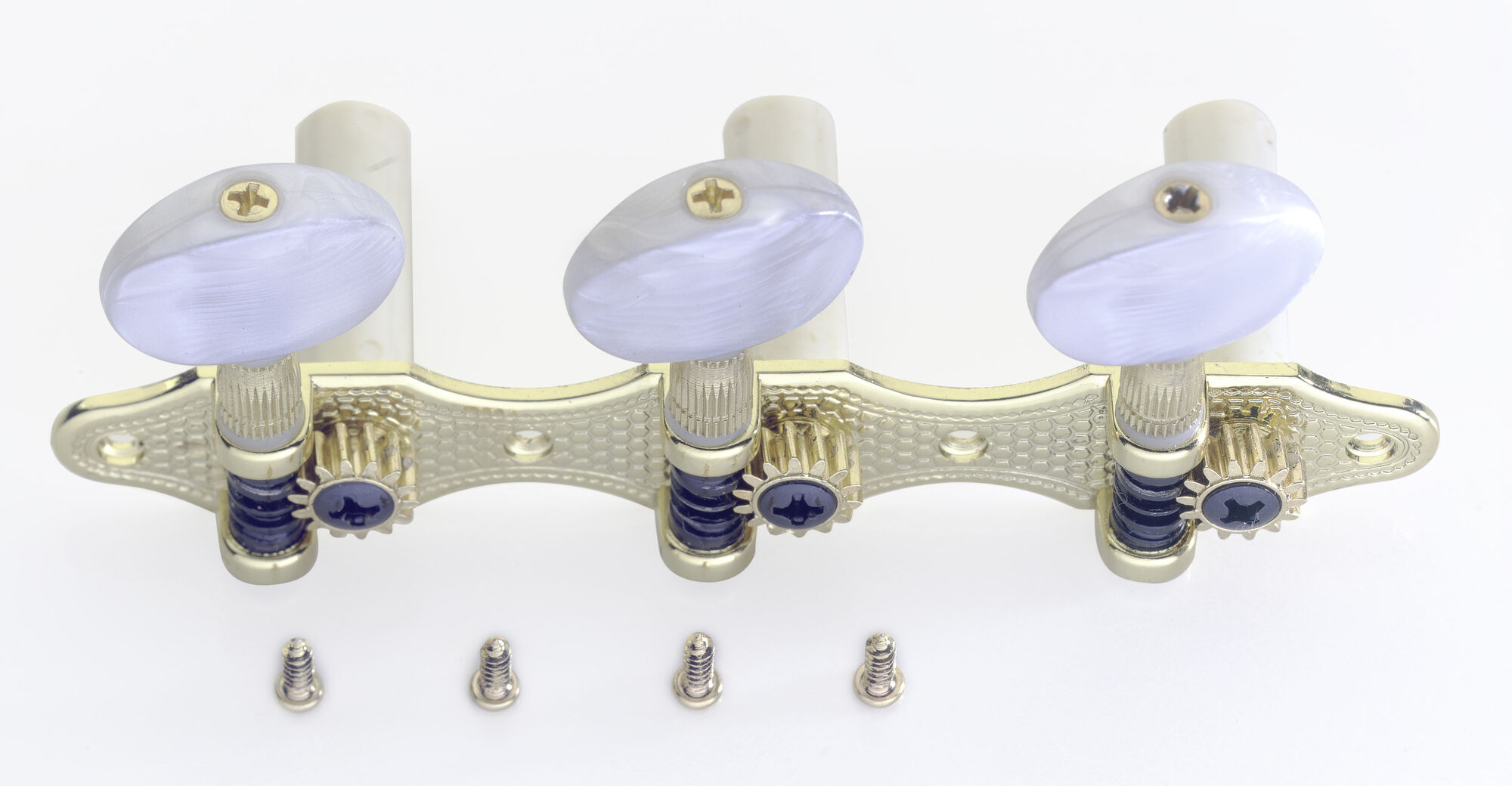 Luxusní ladící mechanika pro klasickou kytaru, 3x3 s polootevřenou osou, zlaté provedení, bílé knoflíky. číst celé