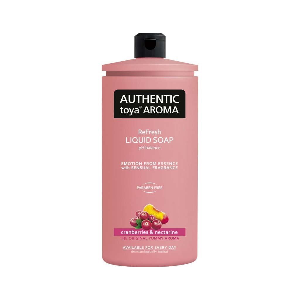 AUTHENTIC Toya Aroma - parfemované tekuté mýdlo na ruce - Cranberries and nectarine - 600MLvelmi luxusní parfemované tekuté mýdlo na ruce s dokonalou vonnou esencí. Tekuté mýdlo má praktický dávkovač. Osvěžující tekuté mýdlo pro dokonale aromatické mytí. Mýdlo má autentickou vůni a obsahuje velmi jemné složení bez parabenů. Mýdlo Toya je vhodné pro každodenní použití. Díky bohaté pěně a luxusní autentické vůni se stává mytí s tímto mýdlem opravdovým zážitkem.Balení náhradní náplň 600ML