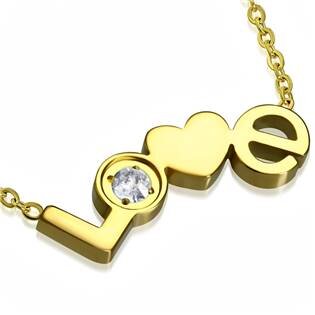 Zlacený náhrdelník s textem love a zirkonem čiré barvy