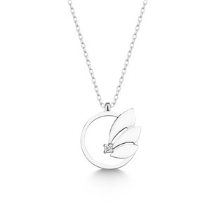 Náhrdelník je vyroben ze 14ti karátového bílého zlata jakosti 585/1000. Celková hmotnost použitých diamantů je 0,02 ct, barva G a čistotě VS1