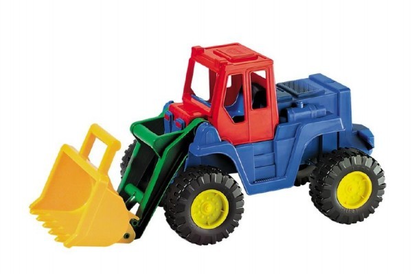Obří barevné auto s nabírací lžící. Klidně ho děti můžou používat jako odrážedlo, unese myslím 50kg bylo uvedeno. Lze používat jak doma tak venku. osobně mám raději dřevěné hračky, ale tuhle člověk po létě snadno osprchuje a přes zimu si děti hrají doma, takže je stoprocentně využitá. Plast je kvalitní, opravdu unese dost, nebledne, kola spojená kovovými tyčkami. Navíc jde o český výrobek a vzhledem k velikosti a kvalitě je cena více než příznivá.