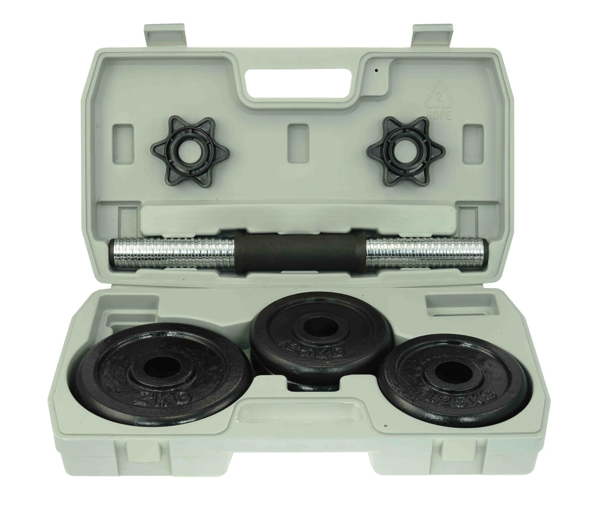 Činkový set LIFEFIT DUMBEL SET STEEL 10kg ABS, je vyrobena z vysoce kvalitních kovových materiálů. Hřídele činek jsou na obou koncích opatřeny závitem pro snadné zajištění závaží pomoci bezpečnostních matic. Zátěžové kotouče jsou pak vyrobeny z kovu a jsou potaženy speciální vrstvou se zvýšenou odolností proti vlhkosti. Celý set je uzavřen v praktickém plastovém kufříku, který zajistí snadnou přenositelnost všech částí a ty tak zůstanou vždy po skončení cvičení při sobě. Kvalitní materiály, speciální povrchová úprava a snadná výměna zátěže jsou vlastnosti, které řadí tyto jednoručky v kufříku mezi nepostradatelnou součást domácí posilovny.