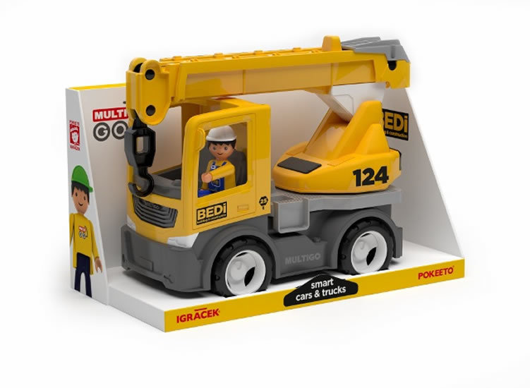 MULTIGO BUILD jeřáb s řidičem je oblíbené nákladní vozidlo, které děti nadchne svými funkčními prvky. Jeřáb je pojízdný a jeho rameno se na základně otáčí. Navíc lze rameno zvedat a vysunout, což přidává další rozměr hry. Hák jeřábu lze ovládat pomocí navijáku, což přináší reálný zážitek z manipulace se stavebními materiály. Součástí balení je také figurka Igráčka stavbaře, která dětem umožní prožívat stavební dobrodružství ještě intenzivněji.