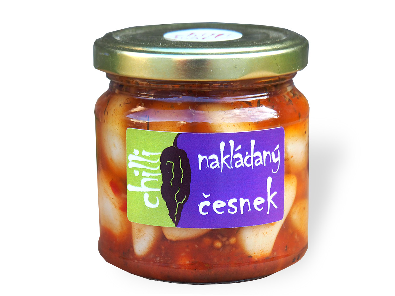 Základem jsou kvalitní české stroužky česneku, doplněné o červenou papriku, tymián a směs voňavého koření. Nálev z octa, soli, cukru a bobkového listu dává česneku jemně nakyslý a přitom delikátní tón.