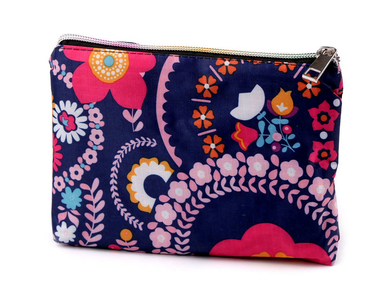 Skládací nákupní taška se zipem 39x40 cm - 1 ks - 44 modrá tmavá květ