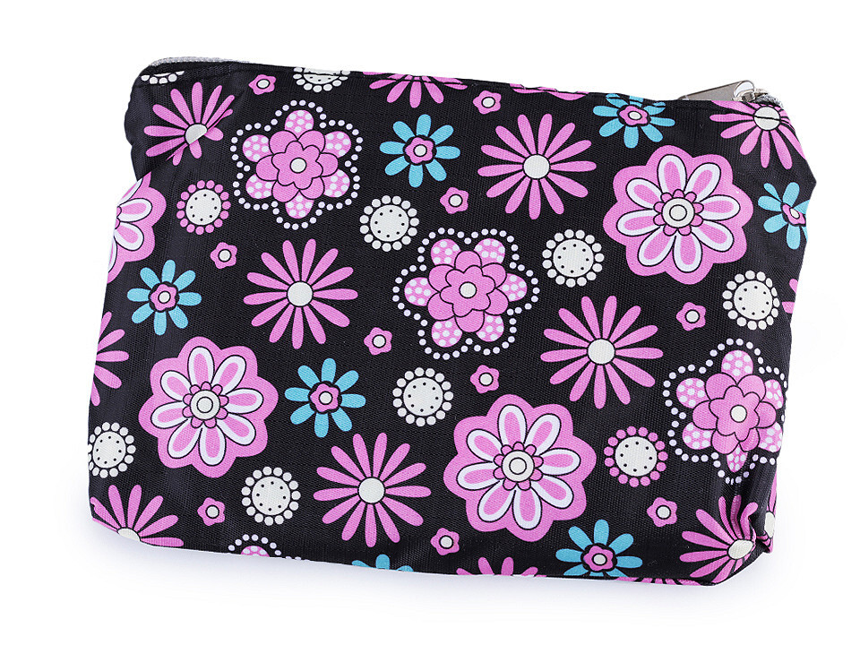 Skládací nákupní taška se zipem 39x40 cm - 1 ks - 9 černá květy