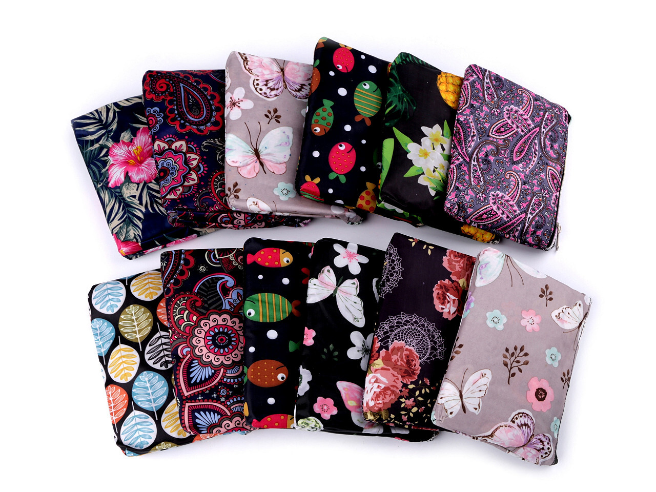 Skládací nákupní taška se zipem 39x40 cm - 12 ks - mix náhodných vzorů