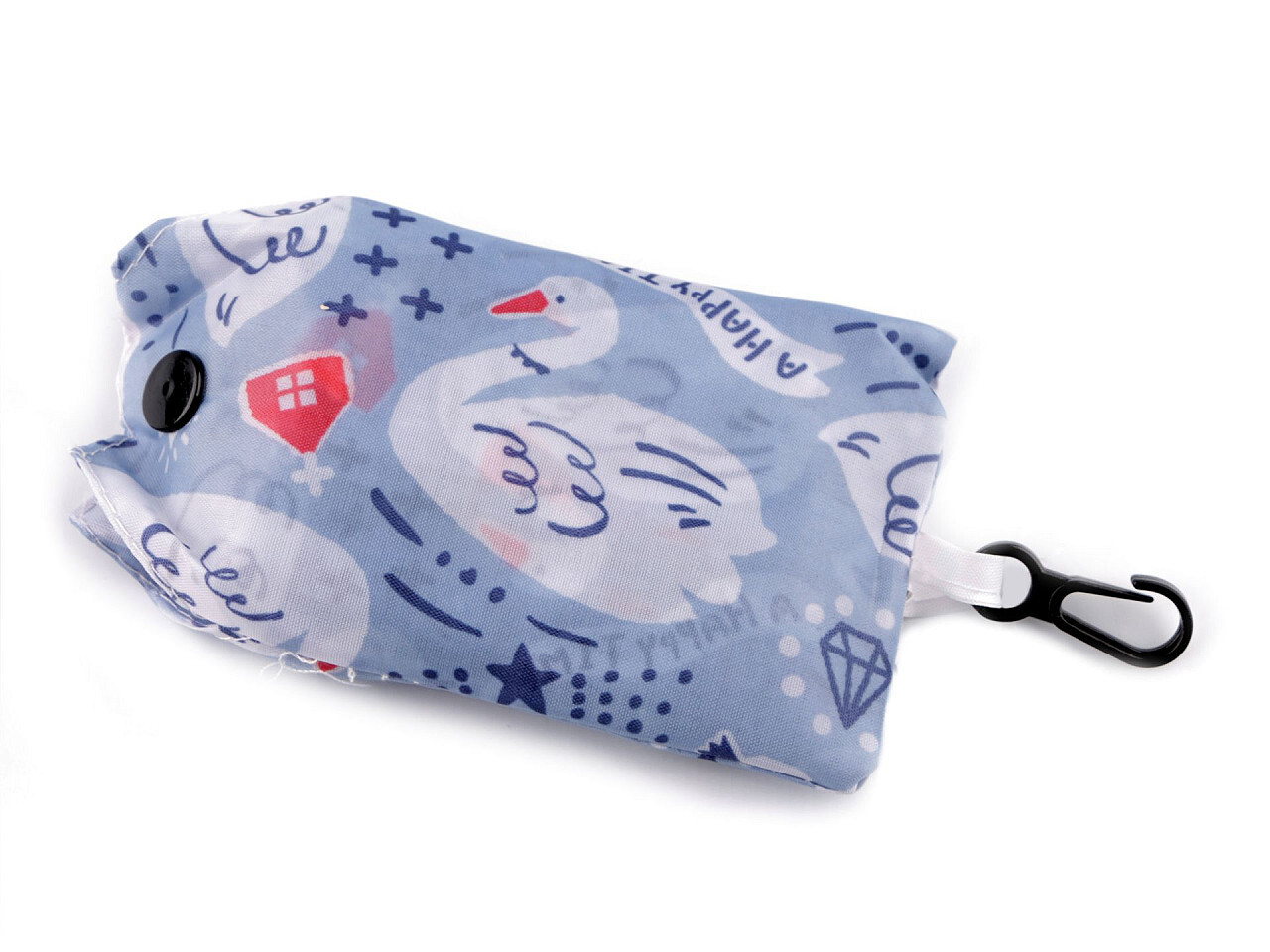 Skládací taška je praktická a skladná, hodí se do každé kabelky. Bude tak stále při ruce, v případě většího nákupu ji jednoduše vytáhnete z malého obalu, ve kterém je složená. Taška je kvalitní a pevná, díky materiálu i snadná na údržbu. Má dvě ucha. Obal se zapíná na patent, má plastovou karabinu na přicvaknutí třeba k poutku riflí. Obal má stejný motiv jako taška uvnitř.
