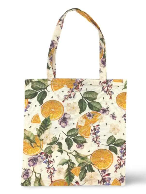 Bavlněná nákupní taška s delším popruhem na rameno - Citrusová