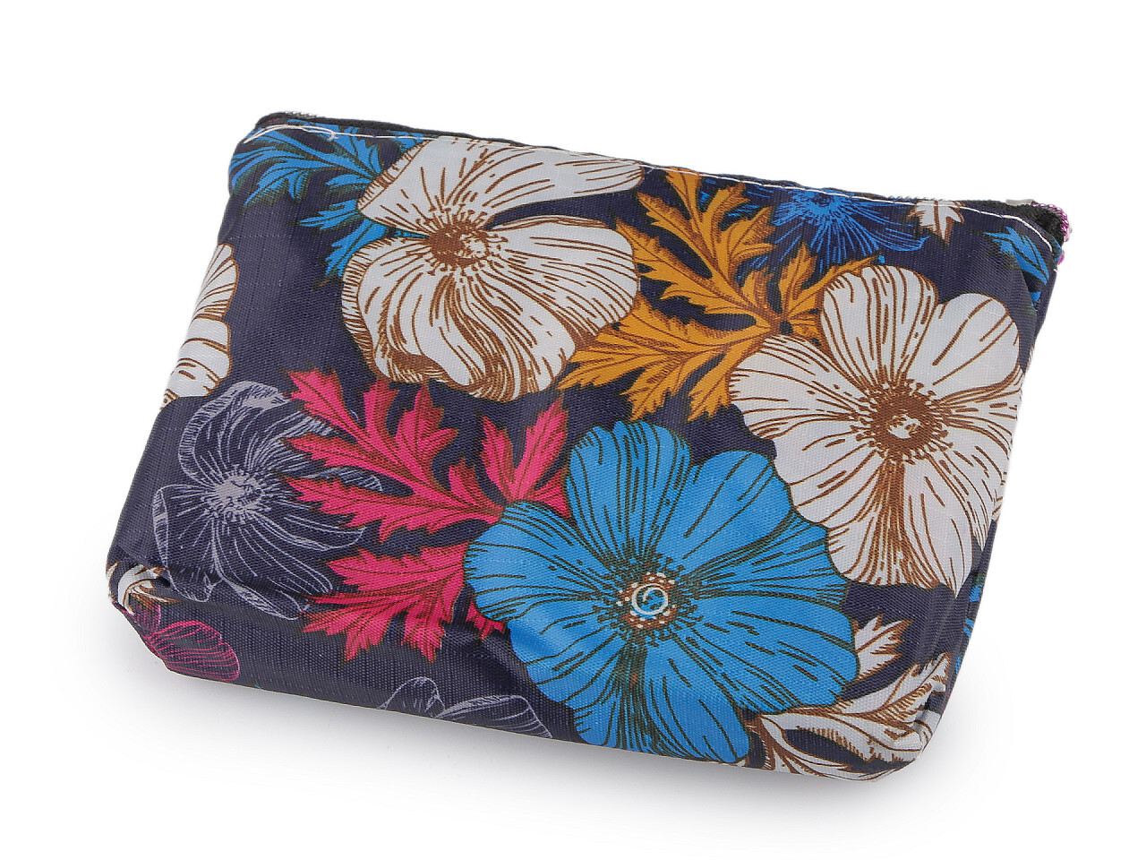 Skládací nákupní taška se zipem 39x40 cm - 1 ks - 58 modrá tmavá květ