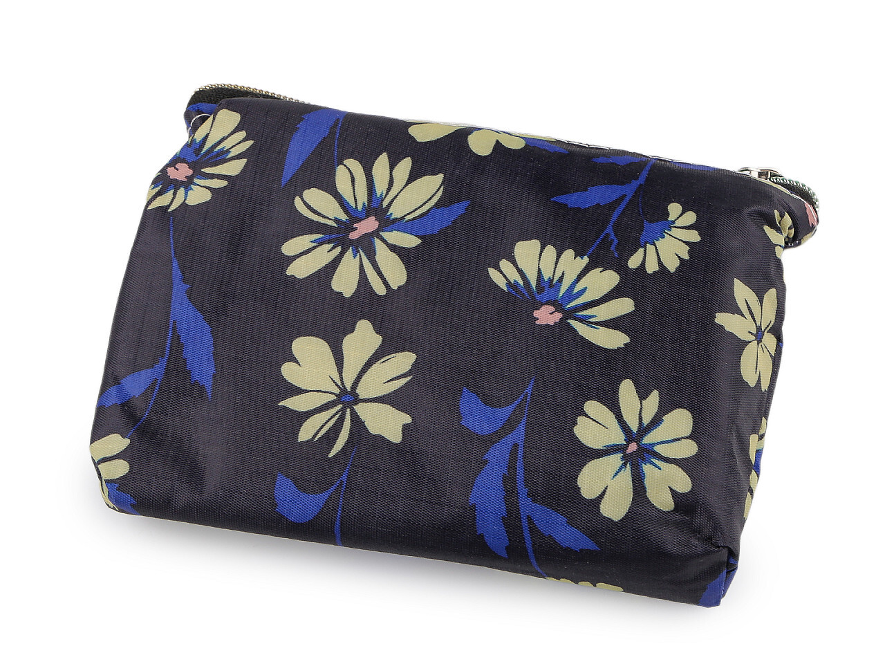 Skládací nákupní taška se zipem 39x40 cm - 1 ks - 64 černá květy