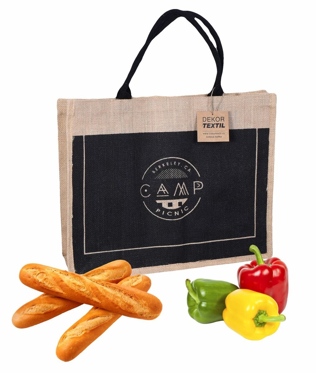 Praktická nákupní taška z juty je velice moderním doplňkem při nákupování.