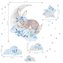 spící králik s obláčky (51x59 cm) a doplňkové prvky (malé hvězdy, obláčky). Přesné rozměry každé části nálepky jsou uvedeny na poslední fotografii.