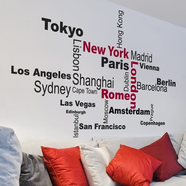 Crearreda Samolepicí dekorace DL XL Cities 82002 Nápisy s názvy světových velkoměst