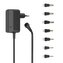 Balení obsahuje 7 konektorů: - 2x jack: 2,5 mm a 3,5 mm - 5x DC konektor: 1,35 x 3,5 mm/ 1,7 x 4 mm/ 2,1 x 5,0 mm/ 1,5 x 5,5 mm/ 2,5 x 5,5 mm - klíč pro nastavení napětí