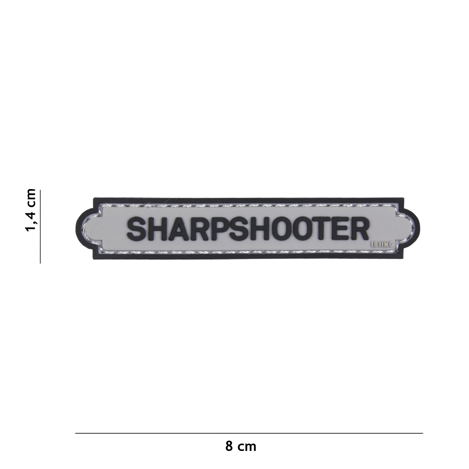 Gumová nášivka 101 Inc nápis Sharpshooter - šedá