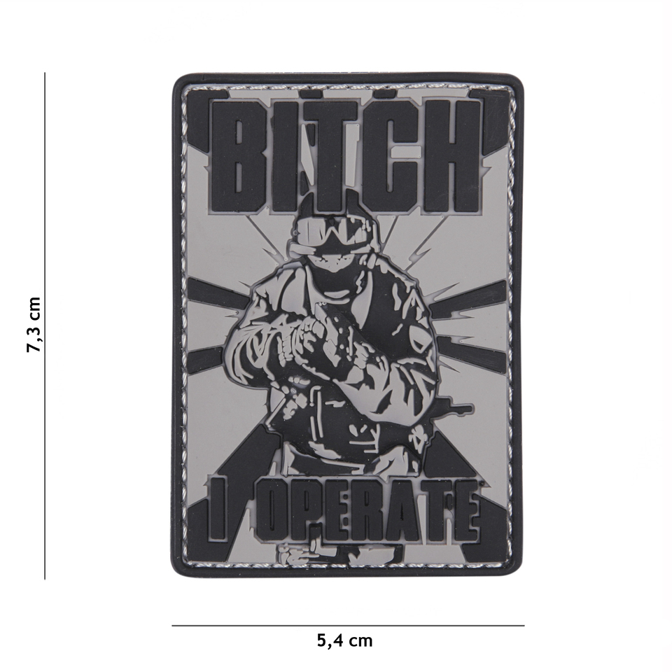Gumová nášivka 101 Inc nápis Bitch - šedá