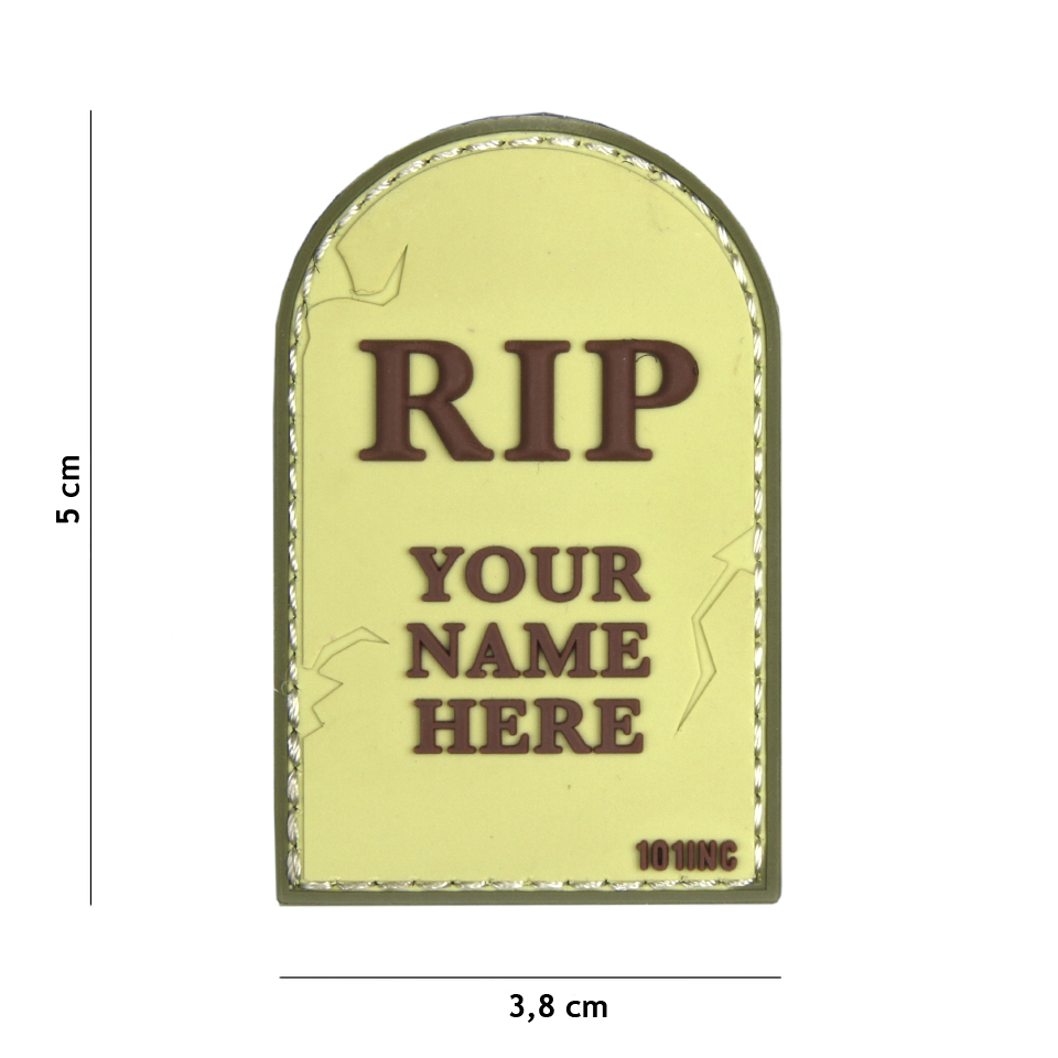 Gumová nášivka 101 Inc nápis RIP Your Name Here - coyote
