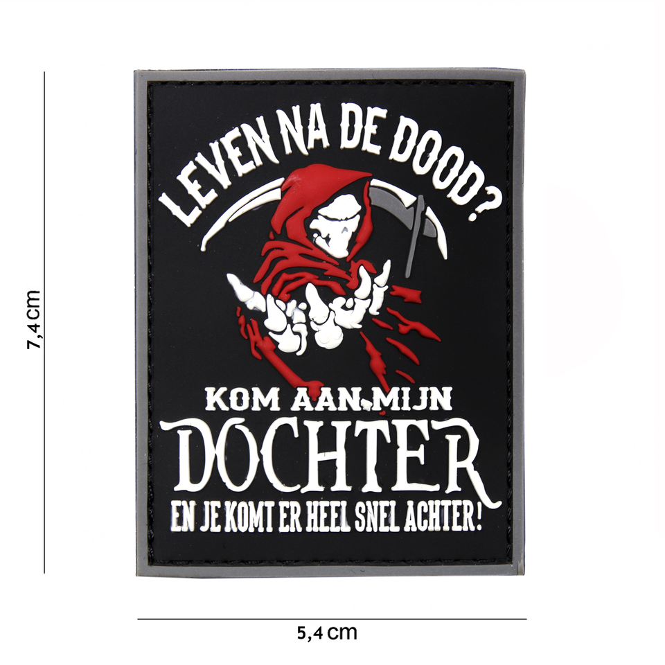 Gumová nášivka 101 Inc nápis Leven na de dood? - černá