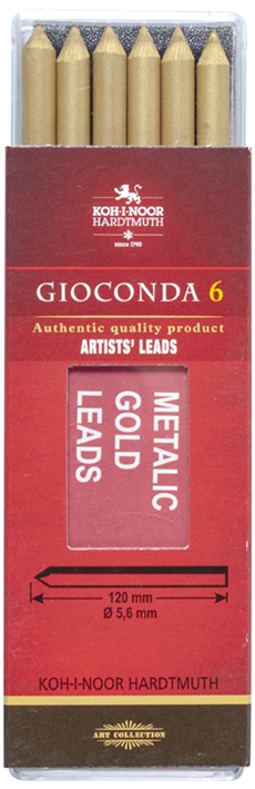 Gioconda wkłady w kolorze złotym do ołówków mechanicznych o średnicy 5.6 mm- Gioconda wkłady w kolorze złotym do ołówków mechanicznych o średnicy 5.6 mm - Pakowane w plastikowe pudełko po 6 sztuk - Wkłady są zaostrzone číst celé