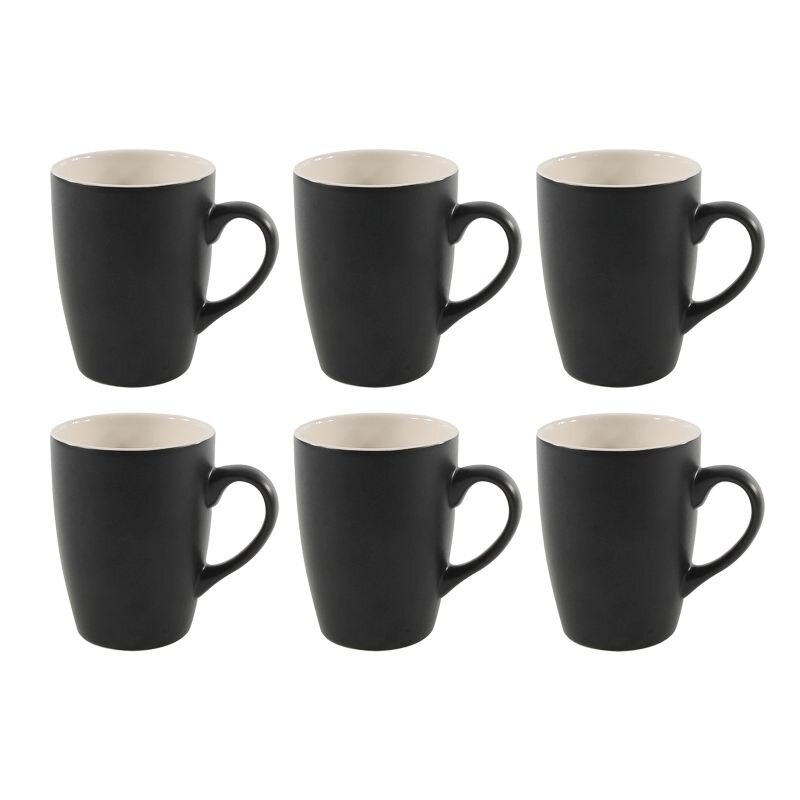 HIT Sada hrnků na kávu i čaj porcelán 6 ks 340 ml černá/krémová HT-24304297