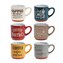 Sada 6 kameninových hrnků s různými kávovými motivy.