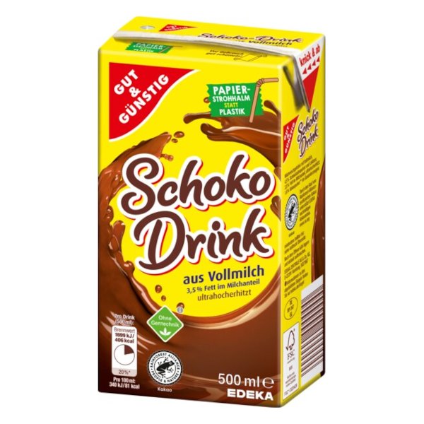 Lahodný mléčný nápoj s kakaovou příchutí. Praktická krabička s brčkem - ideální na cesty. Kakao je z udržitelného pěstování - Certifikace Rainforest Alliance.