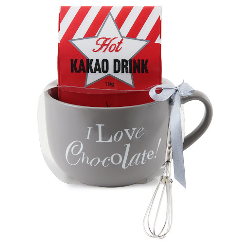 Jedinečný dárkový set jako ideální dárek pro všechny milovníky čokolády, je vhodný jako narozeninový dárek nebo jen tak pro radost.Sada obsahuje: 19 g čokolády, keramický hrnek s nápisem s obsahem 500 ml a metličku.Skladujte na chladném a suchém místě, chraňte před přímým sluncem.
