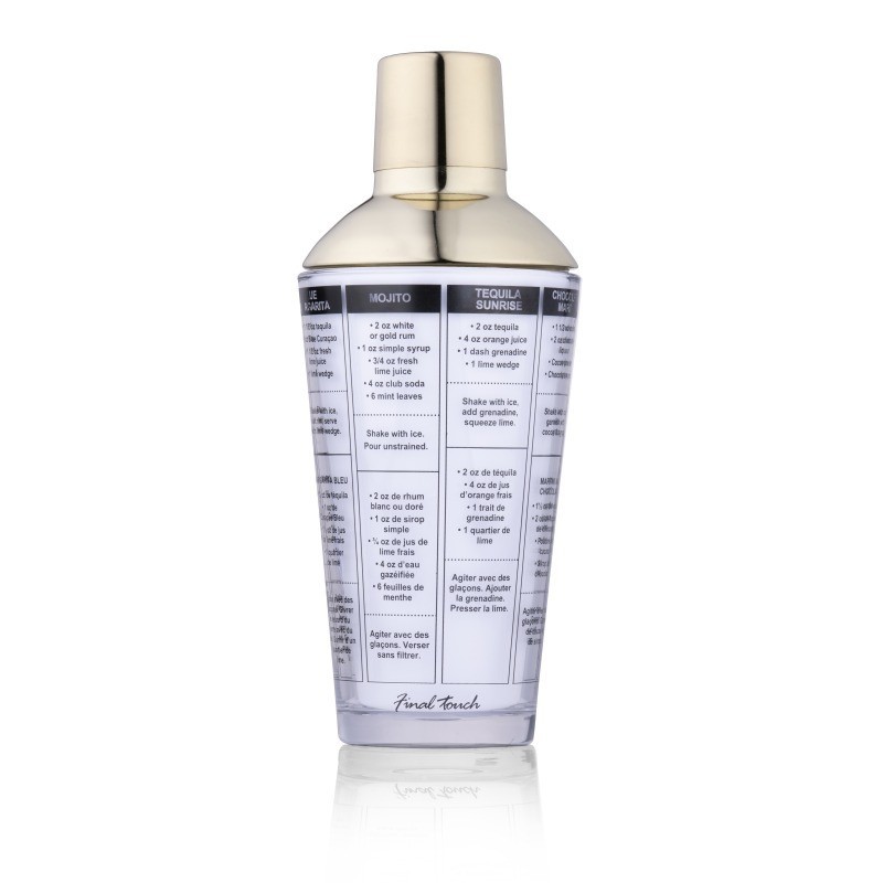 Shaker na koktejly s recepturami sklo / nerez 480 ml