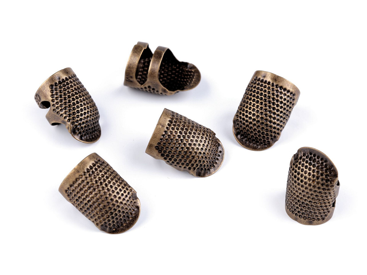 Náprstek kovový, nastavitelná velikost - 10 ks - staromosaz