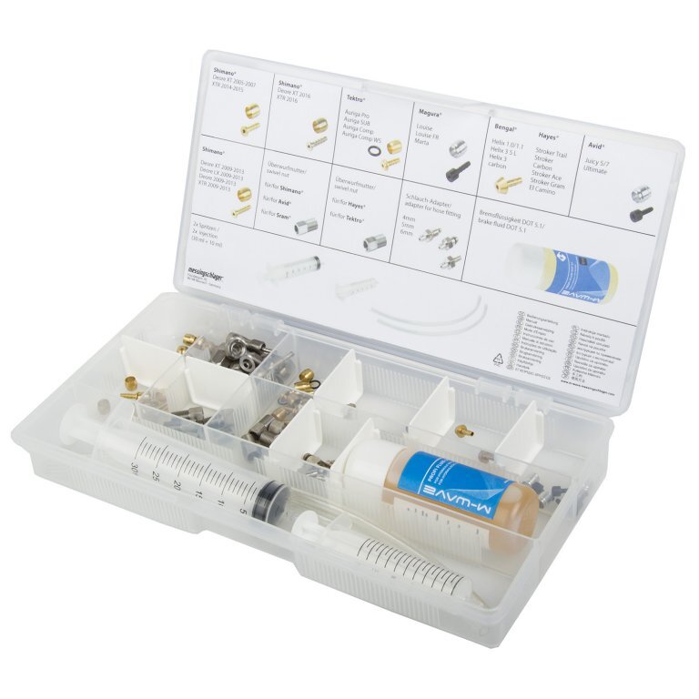 Odvzdušňovací sada M-WaveVhodné pro: Shimano, Magura, Avid, Tektro, Hayes, BengalObsah balení- 2x stříkačka- hadice- adaptéryBalení: originální krabička M-WaveUrčeno pro odborný servis