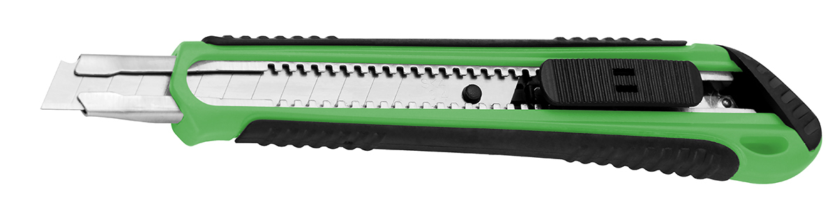 ISKRA ERO univerzální odlamovací nůž. Držák čepele a vodítko jsou vyrobeny z nerezového kovu. Ergonomická rukojeť pro pohodlné používání.