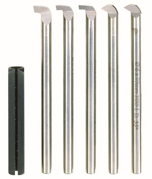 Sześcioczęściowy zestaw rozwiertaków ze stali szybkotnącej. Po 1 szt. dla 60° (metryczny) i 55° (Whitworth’a) gwintów wewnętrznych, 1,3 mm - 2,65 mm i 4 mm. Chwyt Ø 6 mm. Długość 95 mm. Do mocowania w uchwycie narzędziowym imaka narzędziowego do tokarek PD 230/E, PD 250/E i PD 400. Zestaw oferowany w drewnianej skrzynce.