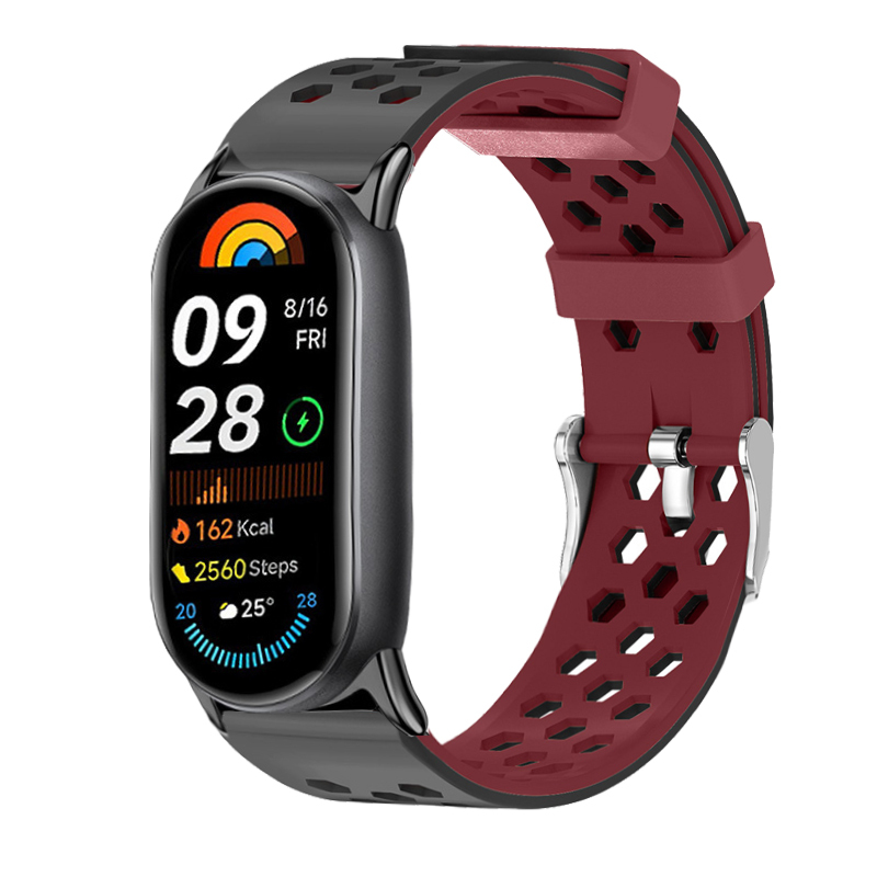 Perforovaný řemínek s přezkou Mi band 8/9/10,Černo-vínová