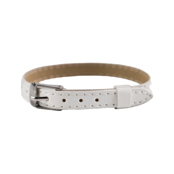 Biely detský náramok KLASIK švédskej značky Nojomojo umožní každému dieťaťu stať sa návrhárom! Náramok má vzhľad kože, je dlhý 22 cm, zapína sa na pracku a vďaka 7 dierkam je pripravený na ďalšie zdobenie. Deti si ho môžu vyzdobiť písmenkami a ozdobami rovnakej značky a vytvoriť z neho personalizovaný náramok s menom.