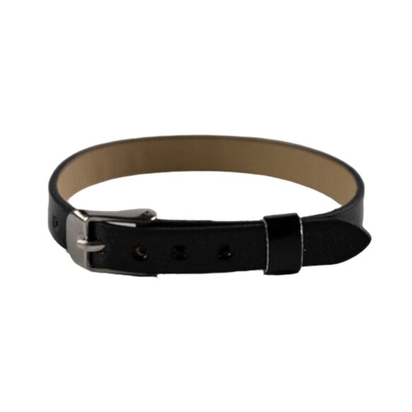 Čierny detský náramok METALIC švédskej značky Nojomojo umožní každému dieťaťu stať sa návrhárom! Náramok má vzhľad kože, je dlhý 22 cm, zapína sa na pracku a vďaka 7 dierkam je pripravený na ďalšie zdobenie. Deti si ho môžu vyzdobiť písmenkami a ozdobami rovnakej značky a vytvoriť z neho personalizovaný náramok s menom.