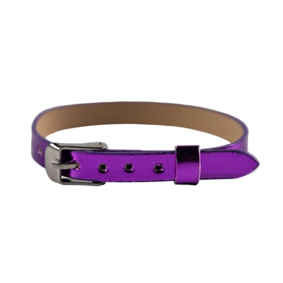 Tmavofialový detský náramok METALIC švédskej značky Nojomojo umožní každému dieťaťu stať sa návrhárom! Náramok má vzhľad kože, je dlhý 22 cm, zapína sa na pracku a vďaka 7 dierkam je pripravený na ďalšie zdobenie. Deti si ho môžu vyzdobiť písmenkami a ozdobami rovnakej značky a vytvoriť z neho personalizovaný náramok s menom.