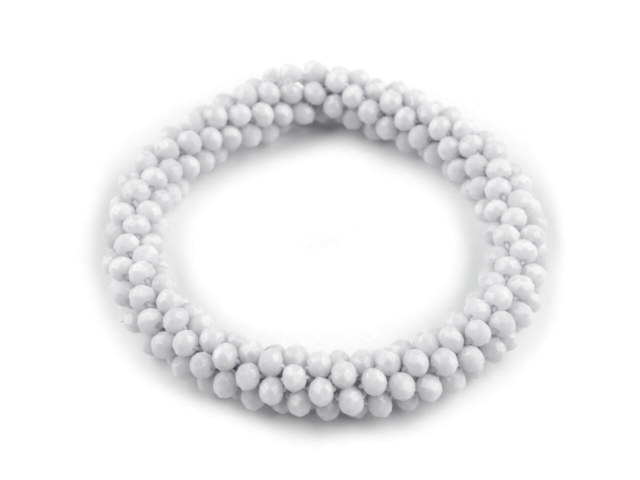 Náramek / gumička z broušených korálků - 1 ks - 24 Off White