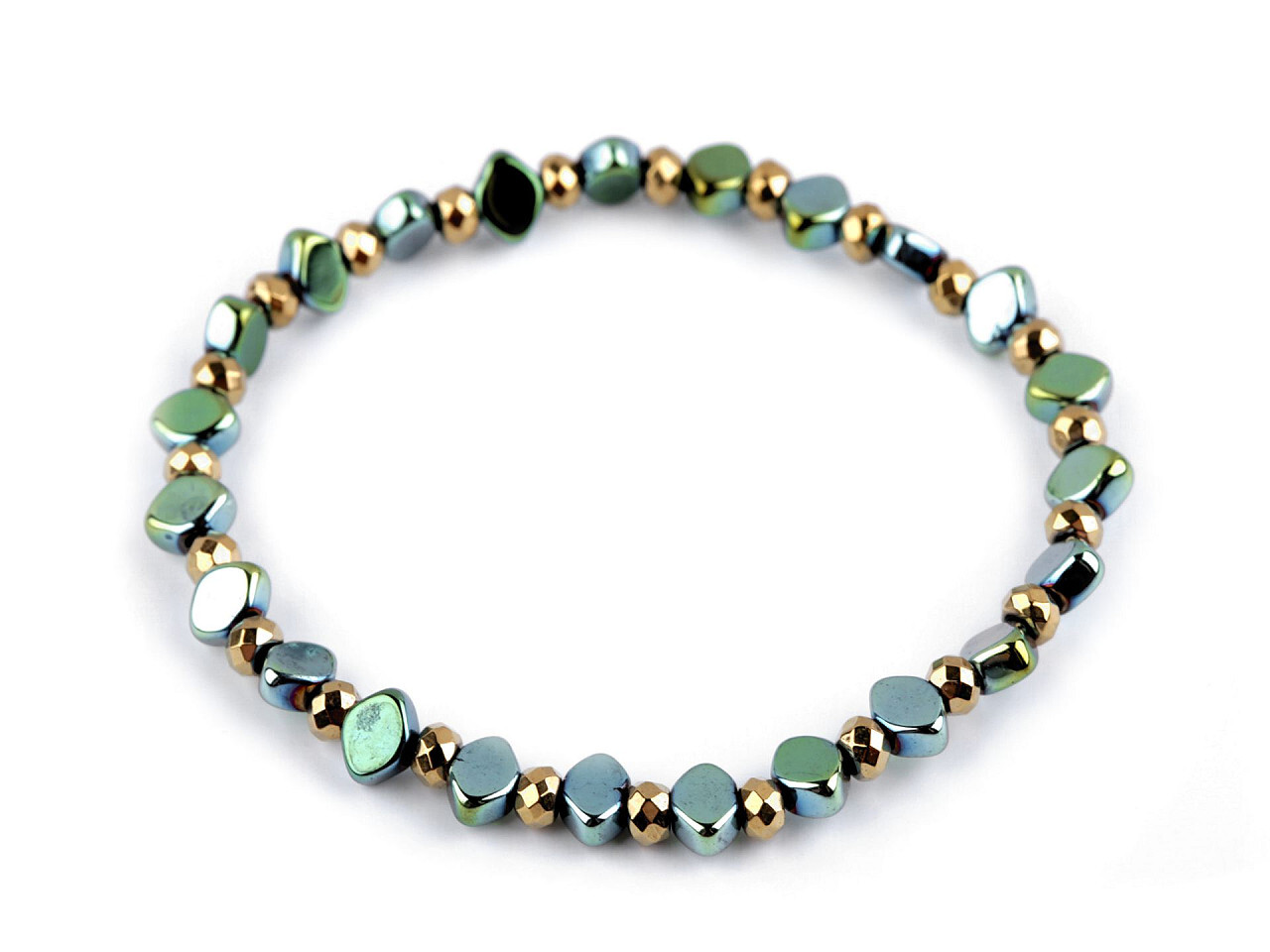 Náramek pružný hematitový - 1 ks - 4 zelená sv. zlatá