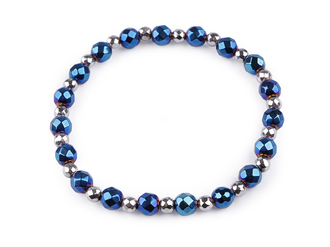 Náramek pružný hematitový - 1 ks - 2 modrá