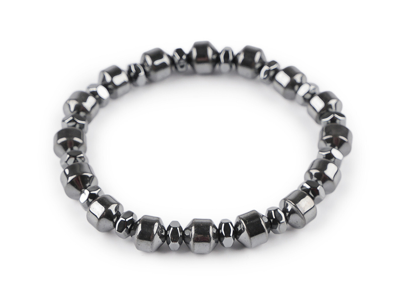 Náramek pružný hematitový, unisex - 1 ks - 1 šedá hematit