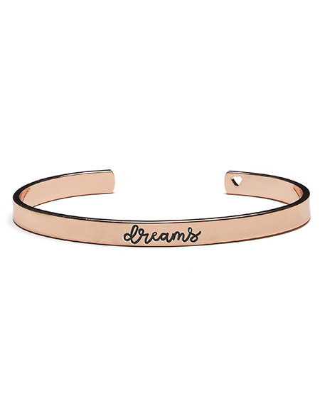 Kovový náramek Bangle.Krásný náramek s nápisem Dreams.Barva růžová, materiál kov, velikost 6,5 cm. číst celé