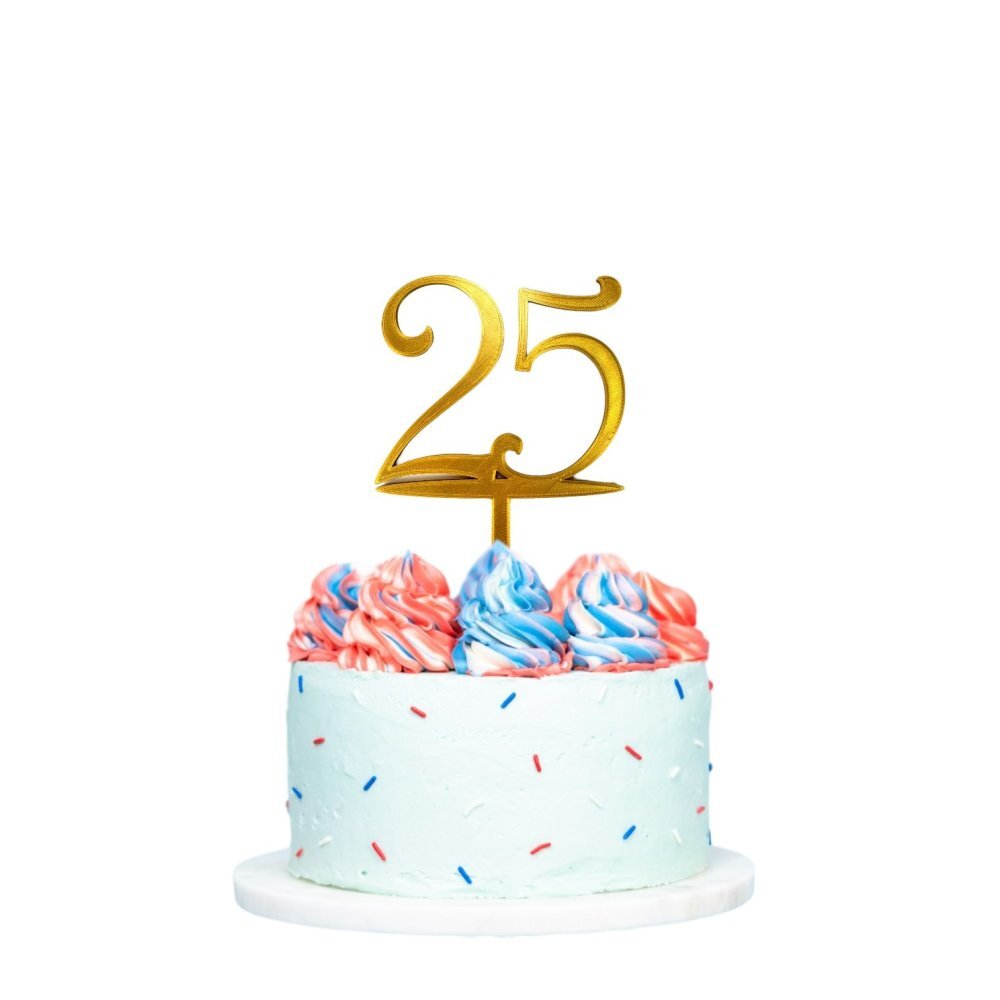 Tvůrčí zápich na dort čísla 25 tiskneme v barevných verzích na 3D tiskárně z materiálu PLA plast (materiál biologicky odbouratelný), odolný do 50°C, nevhodný do myčky na nádobí. Před prvním použitím a vždy po použití zápich omyjte jarovou vodou a důkladně osušte. Není určeno pro děti do 3 let, hrozí odlomení malých částí.