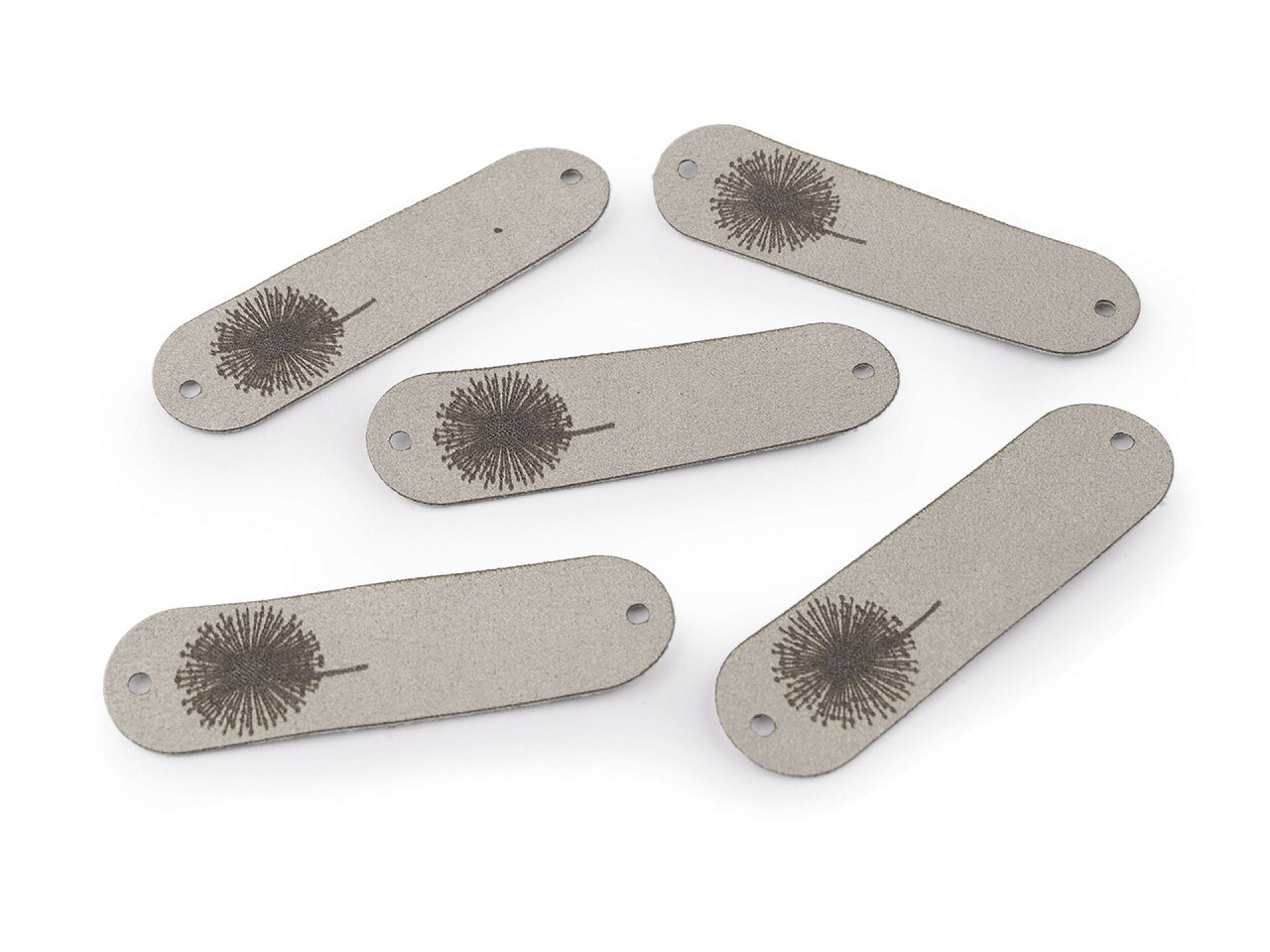 Nášivka / štítek z eko kůže - pampeliška - 5 ks - 6 šedá nejsvětlejší