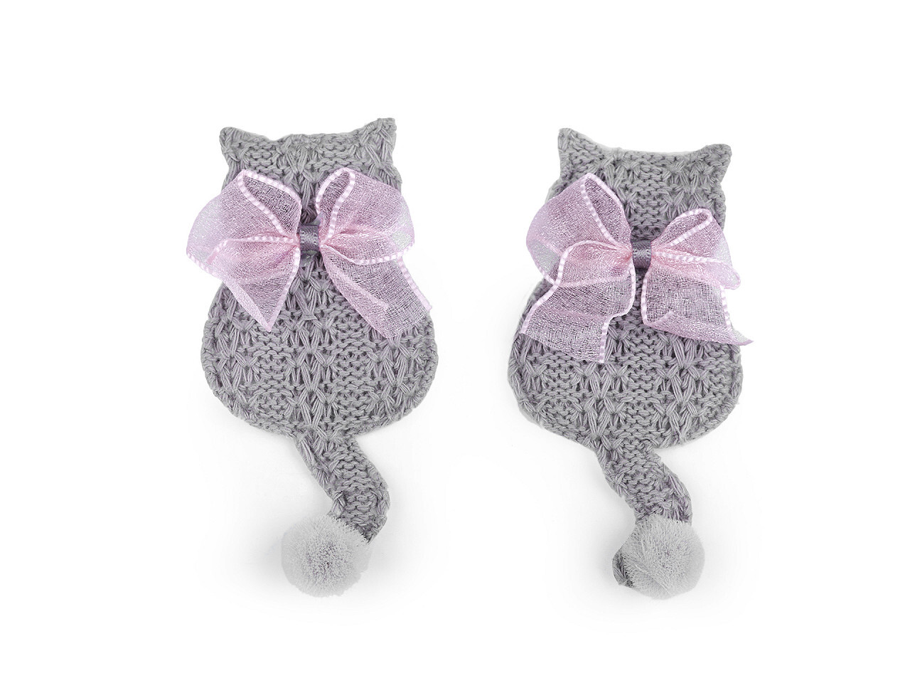Textilní aplikace kočky vykouzlí vašemu outfitu originální design s nádechem vintage. Má povrch imitující pleteninu, je ozdobená mašličkou a malou bambulkou.