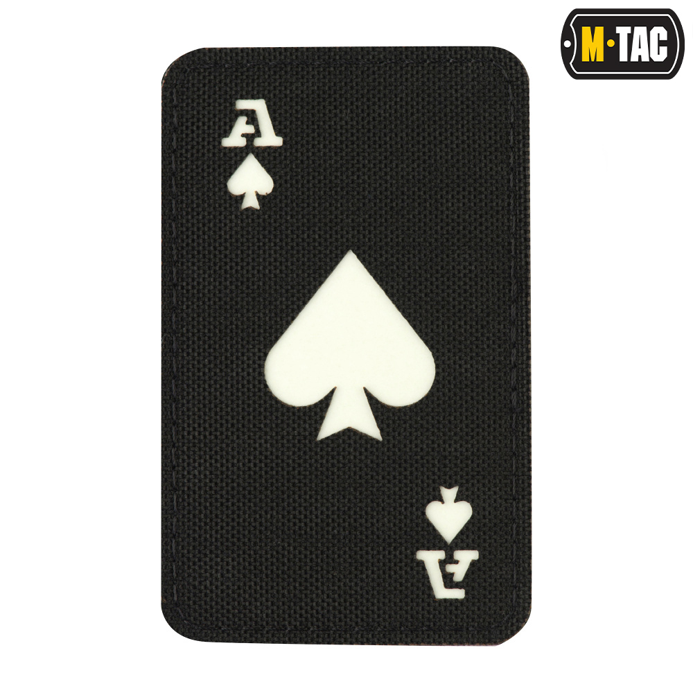 Nášivka na Ace of Spades od ukrajinské značky M-Tac je navržena tak, aby zvýšila bojovnost a deklarovala morální hodnoty.Motiv karty je vyroben z materiálu akumulujícího světlo, který ve tmě svítí.Jedná se o kartu s obrázkem pikového esa a umožňuje použít symbol k předání děsivé zprávy nepříteli.Nášivka je vyrobena z materiálu Cordura 500D, vysoce odolného materiálu, který odolává oděru a vysokému zatížení.