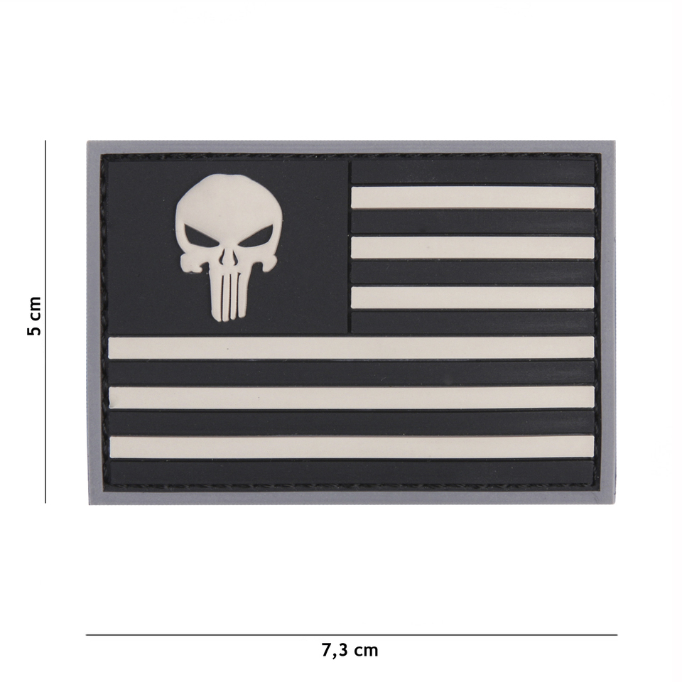 Gumová nášivka 101 Inc vlajka Punisher USA - šedá