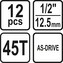 Gola sada STHOR TO-58633 12ks Gola sada 1/2" obsahuje 12ks: nástavce a ráčnu s plastovou rukojetí. Vyrobené z kvalitní oceli s funkcí AS-DRIVE. Funkce AS-DRIVE umožňuje vyvinout větší kontaktní sílu, neboť ke kontaktu se šroubem nedochází na hranách šestihranu, nýbrž v první třetině styčných ploch. Tím nedochází k poničení hlavice šroubu. Ořech mnohdy povolí i matice a šrouby již poničené.