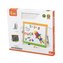 Dřevěná tabule o velikosti cca 51 x 42 x 3 cm. Z jedné strany je černá magnetická tabule, na kterou lze kreslit křídami a z druhé strany je bílá tabule na kterou lze kreslit fixou. Rozměr balení cca 52 x 46,5 x 6. Věk 3+ číst celé